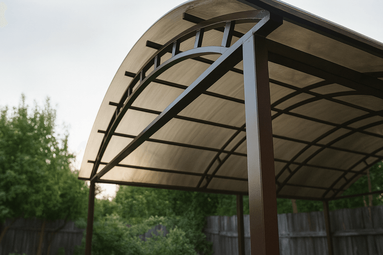 Навесы из профильной трубы — это универсальное решение для защиты автомобиля, зоны отдыха или входной группы от осадков и солнца. Конструкция отличается прочностью, устойчивостью к ветровым и снеговым нагрузкам и подходит для установки на участках любого размера.