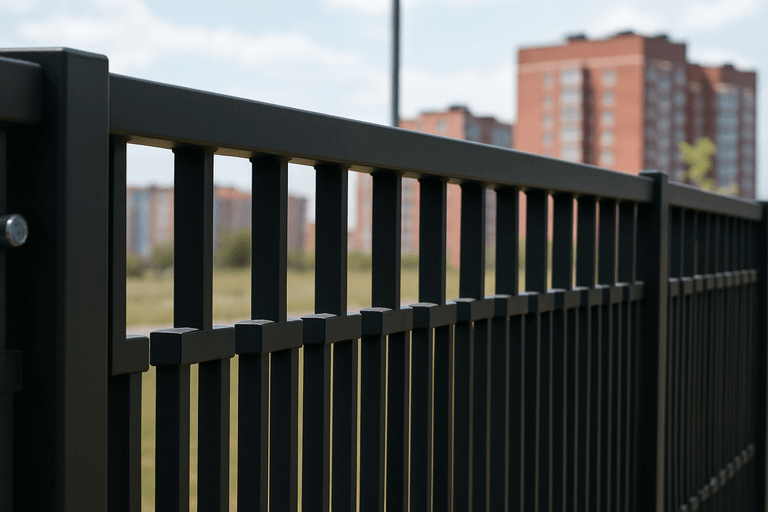 Для объектов с большим протяжением подходит сварной забор из профильной трубы, так как он легко масштабируется и обеспечивает устойчивость к ветровым нагрузкам.